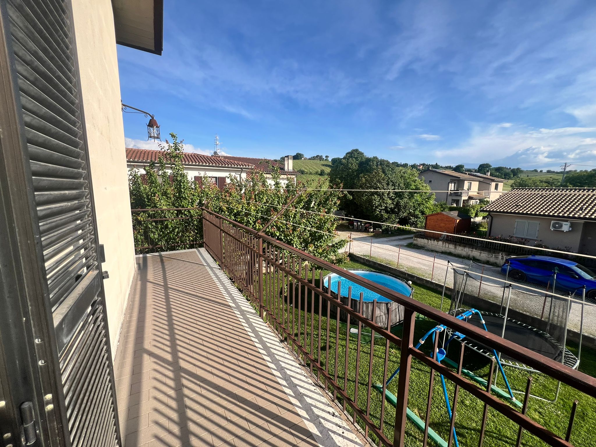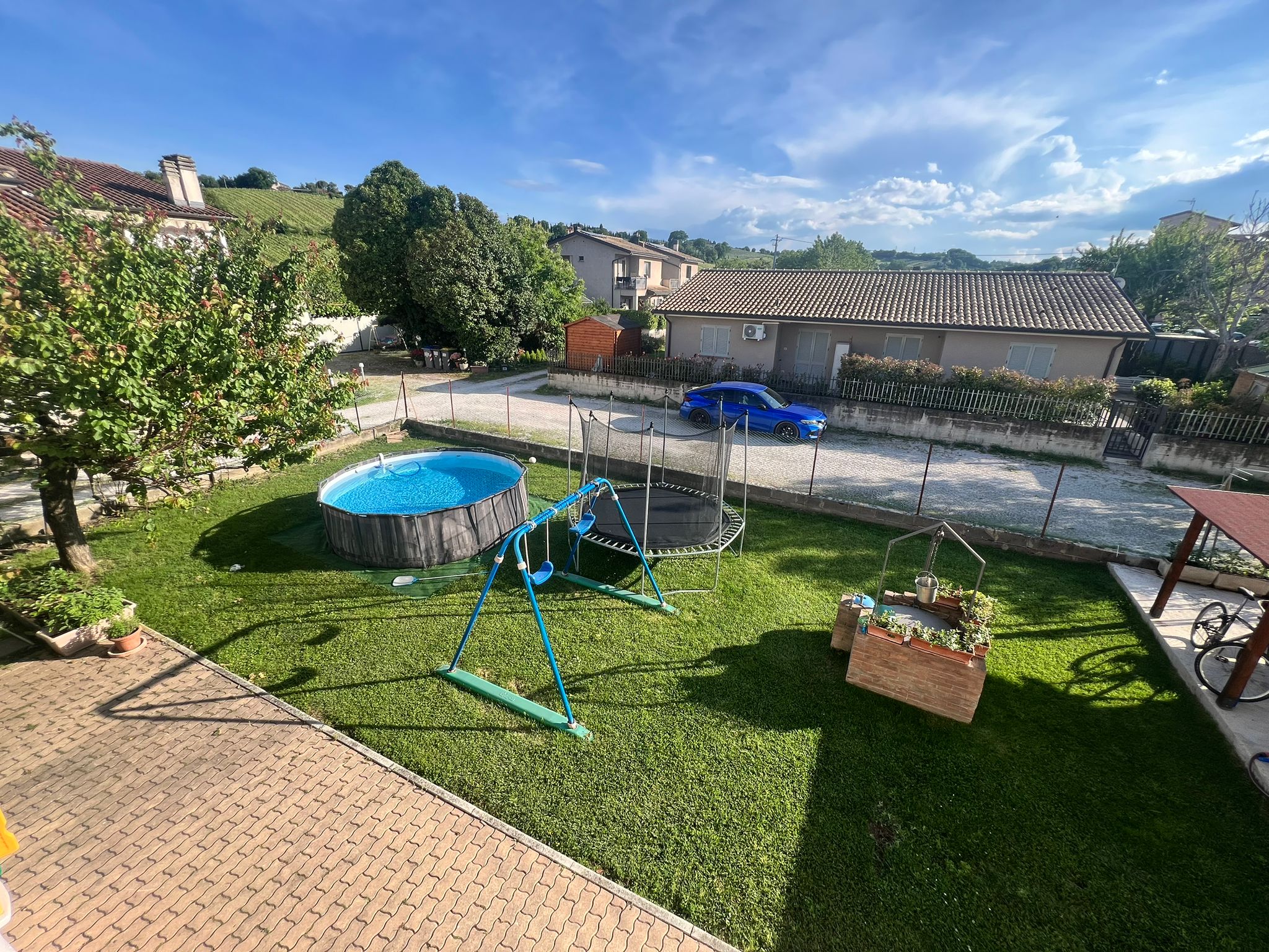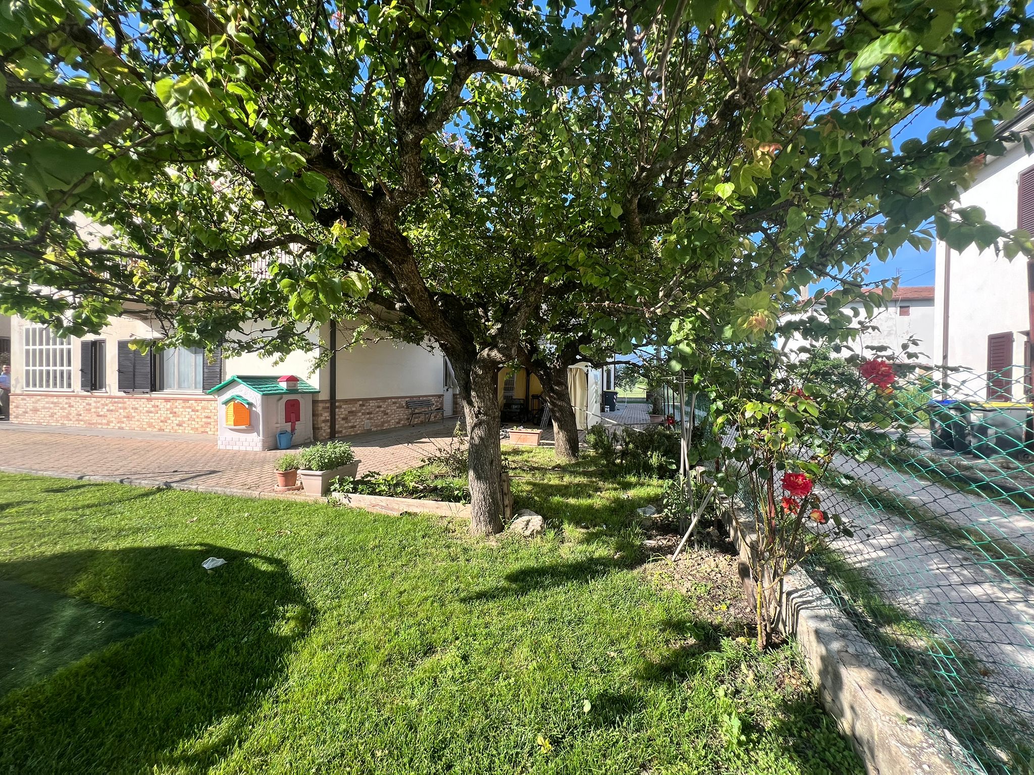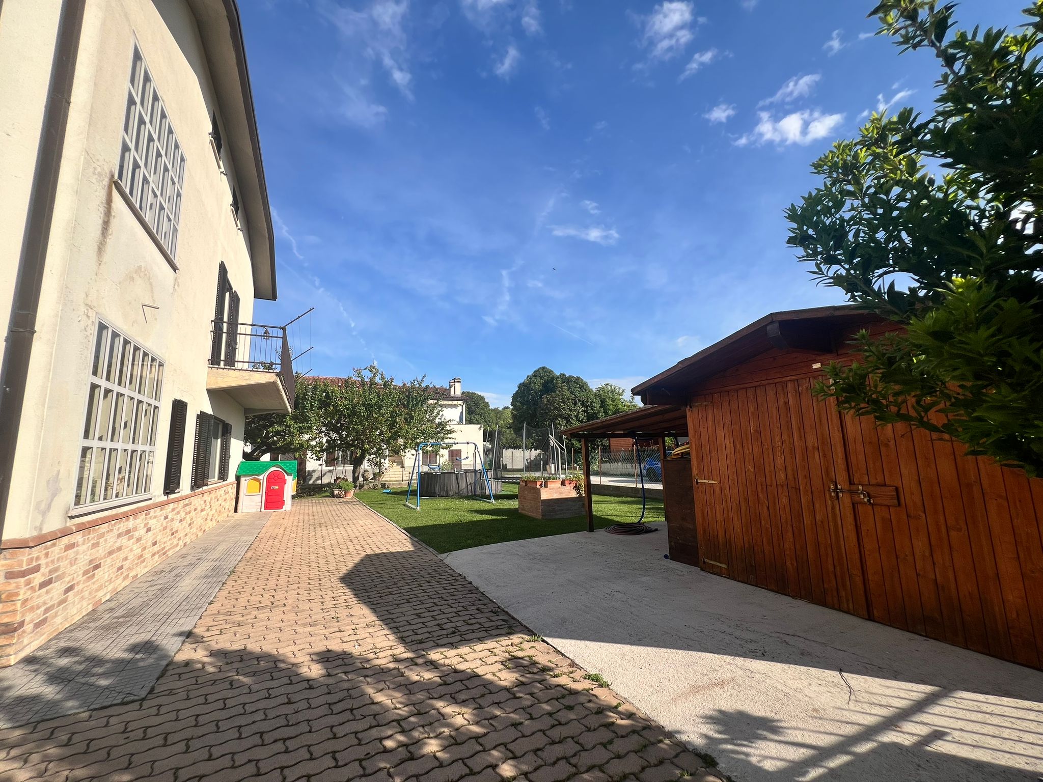 A San Venanzo, a circa 600 mt dalle servite zone di Pontebari e viale Guglielmo Marconi, proponiamo in vendita intera bifamigliare realizzata negli anni ’90. L’intera proprietà di circa 434 mq si divide in due porzioni ciascuna con ingresso indipendente. La prima porzione misura 218 mq, è disposta su due livelli ed è composta da: doppio ingresso indipendente, disimpegno, ampio soggiorno con termo-camino e split inverter, cucina angolare ed abitabile, camera/studio e bagno di servizio con finestra, corridoio e garage di 26 mq per due auto con accesso diretto all’ingresso principale della casa. Al piano primo zona notte composta da grande camera da letto padronale con split inverter e cabina armadio, due camere da letto, anch’esse dotate di split inverter, una matrimoniale e l’altra singola con terrazzo abitabile coperto ed altro balcone panoramici, bagno con grande doccia, ripostiglio-lavanderia , dal quale si accede ad altro terrazzo coperto ed altro balcone di circa 15 mq. Al piano secondo mansarda di circa 50 mq ideale per realizzare un appartamento indipendente oppure studio e/o stanze per hobby. La seconda porzione, anch’essa disposta su 2 livelli più soffitta, misura circa 216 mq ed è così composta: ingresso coperto, soggiorno con termo-camino, cucina abitabile, camera da letto con split-inverter, bagno con finestra e doccia, corridoio e garage di 24 mq. (Due porte finestre indipendenti una nella camera da letto e l’altra nella cucina che conducono direttamente sia alla corte/giardino che all’ingresso della proprietà). Al piano primo un altro appartamento composto da: ingresso, ampio soggiorno con tre porte finestre, dalle quali si accede ad un lungo balcone di 15 mq, terrazzo con vetrata di 6 mq (ottimo per stendere), panoramici sulle colline circostanti, cucina abitabile, camera da letto, dalla quale si accede ad un terrazzo coperto (6 mq) e ad altro lungo balcone, anch’esso panoramico, camera matrimoniale e due bagni, di cui uno con doccia. Al piano secondo mansarda di circa 50 mq con bagno ideale per realizzare un appartamento indipendente oppure studio e/o stanze per hobby. Locale di deposito di 11 mq con tettoia per ciascuna porzione. Impianti a norma costruzione. Zanzariere, finestre con doppi vetri e persiane in alluminio, termosifoni in acciaio, caldaia a condensazione recente posta in vano caldaia esterno all’abitazione. Completa la proprietà ampio giardino con corte di totali 900 mq circa con pozzo, tutto completamente recintato e con cancello automatico. Possibilità di acquistare separatamente ciascuna porzione.
